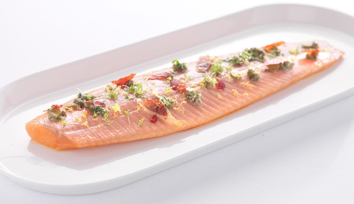 Serve the Fjord Trout with lemon zest and a little bit of salt sprinkled on top.